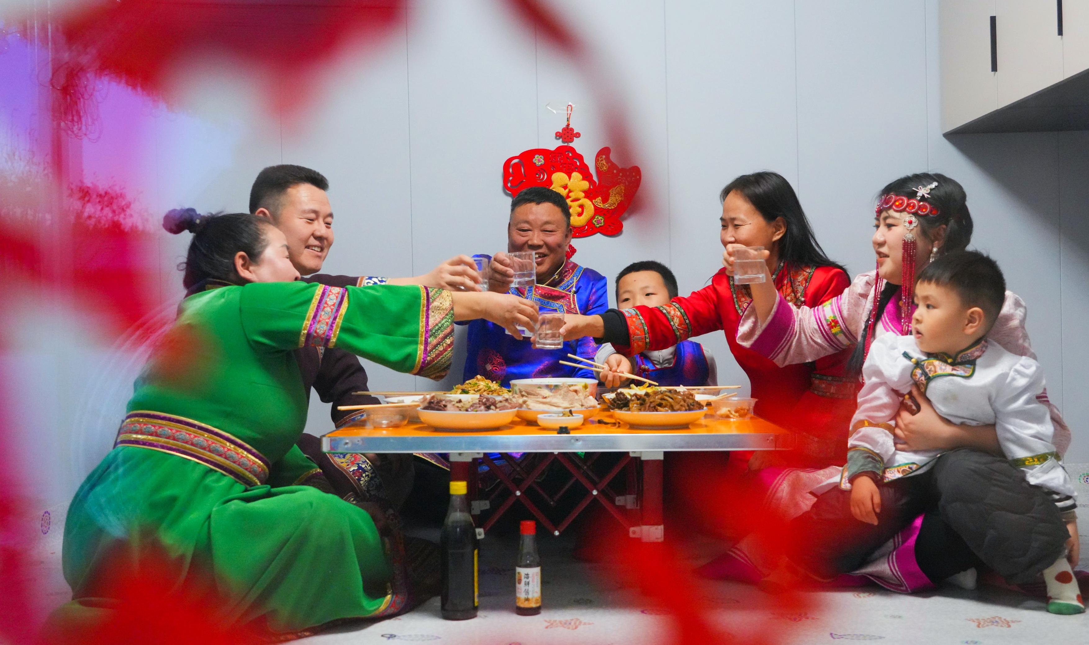 達斡爾族人將新春年味,繡進藍白相間的袍角,包進柳蒿芽的清香,藏進每一個傳統(tǒng)習俗的細節(jié)中。
