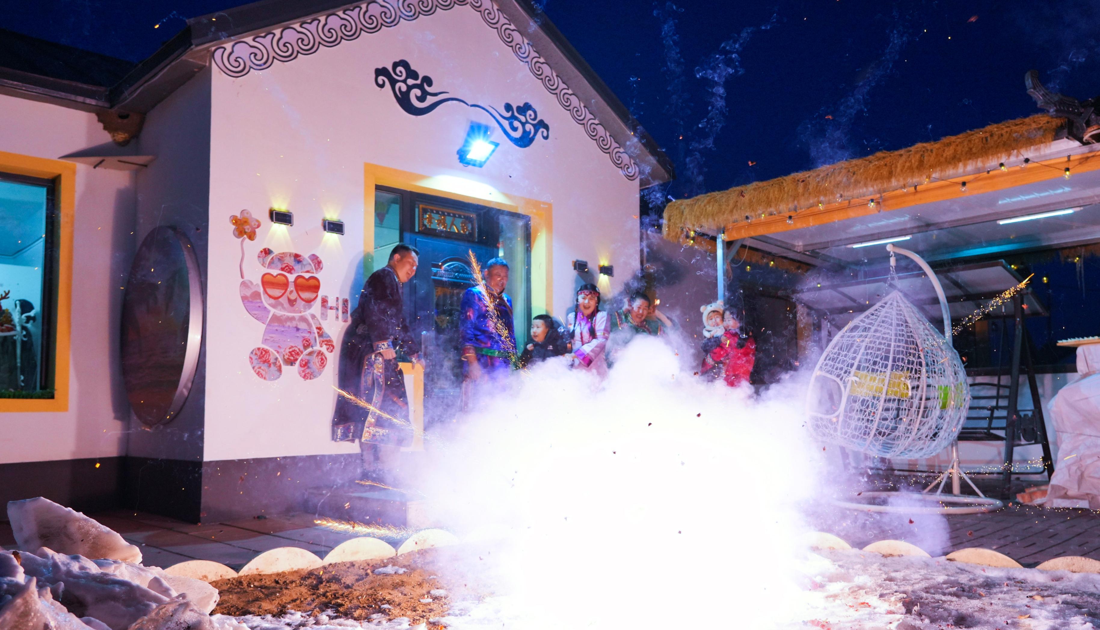 嫩江江畔的氣溫降至零下15攝氏度,冰道凝霜,寒風凜冽。在郭勇開設(shè)的“拾光庭院”民宿內(nèi),卻是另一番火熱景象。紅燈高懸,福字報喜、暖意融融,空氣中處處彌漫著“年”的氣息。